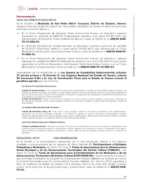 Recomendación. INFORME INDIVIDUAL CUENTA PÚBLICA MUNICIPAL 2022