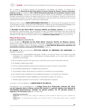 Por lo anterior, la Auditoria Superior de Fiscalización del Estado de Oaxaca, le requirió al H.