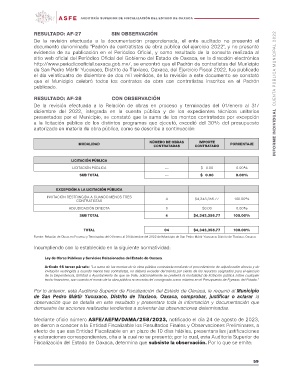 Artículo 46 tercer párrafo: “La suma de los montos de la obra pública contratada mediante el procedimiento de adjudicación directa y de