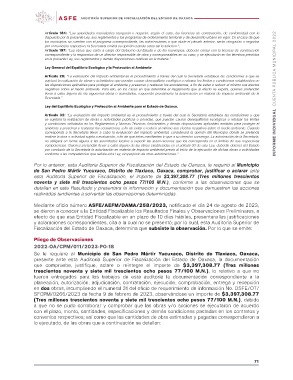 Fiscalización del Estado de Oaxaca, determina que subsiste la observación. Por lo que se emite: