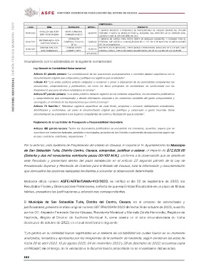 de San Sebastián Tutla, Distrito Centro, Oaxaca, comprobar, justificar o aclarar, el importe de $72,928.00