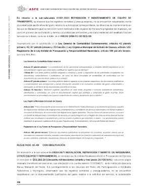 TRANSPORTE, se observó que los registros contables y presupuestarios, no se encuentran respaldados con la
