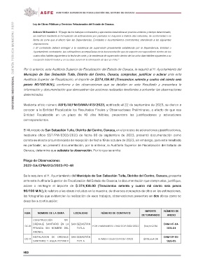Por lo anterior, esta Auditoría Superior de Fiscalización del Estado de Oaxaca, le requirió al H. Ayuntamiento del