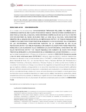 REGISTRO DE LA ADQUISICION DE 500 SILLAS REFORZADAS ZINTRO Y 20 TABLON PLEGABLE CON