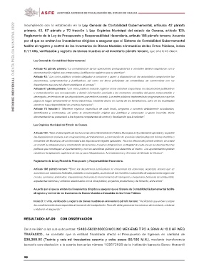 Incumpliendo con lo establecido en la Ley General de Contabilidad Gubernamental, artículos 42 párrafo