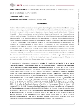 ENTIDAD FISCALIZABLE: H. Ayuntamiento del Municipio de San Sebastián Tutla, Distrito del Centro, Oaxaca.