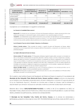 Municipio de San Sebastián Tutla, Distrito del Centro, Oaxaca, justificar o aclarar conforme a la observación