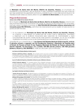 Fiscalización del Estado de Oaxaca, determina que subsiste la observación; por lo que se emiten: