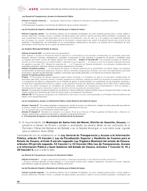 al Congreso del Estado a través del Órgano Superior de Fiscalización”. Artículo 47 fracción XVI: “Los acuerdos de sesión de Cabildo se