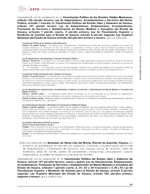 Oaxaca, artículo 137 párrafos tercero, cuarto y quinto; Ley de Adquisiciones, Enajenaciones,