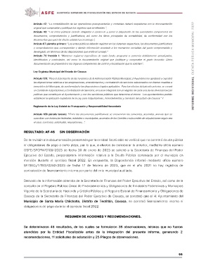 Se determinaron 46 resultados, de los cuales se formularon 38 observaciones, mismas que no fueron