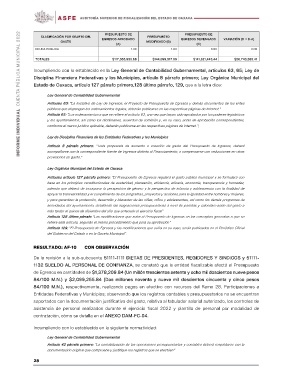 Entidades Federativas y Municipios; observando que los registros contables y presupuestarios no se encuentran