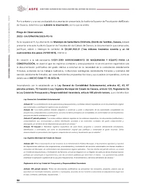de Oaxaca, determina que subsiste la observación, por lo que se emite: