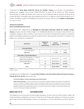anterior, la Auditoria Superior de Fiscalización del Estado de Oaxaca, determina que subsiste la observación.