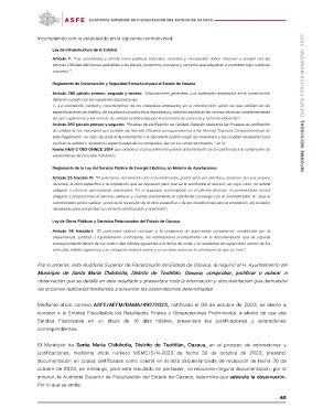 anterior, la Auditoria Superior de Fiscalización del Estado de Oaxaca, determina que subsiste la observación.