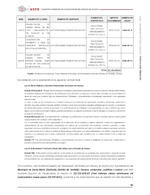 Artículo 74: “Las Dependencias, Entidades o Ayuntamientos ejecutores, tendrán la obligación de supervisar y vigilar todo el