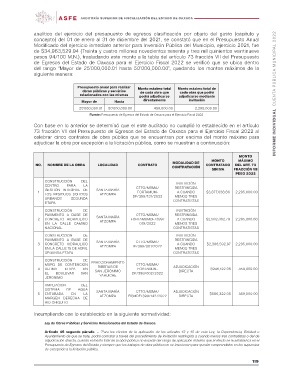adjudicar la obra por excepción a la licitación pública, como se muestran a continuación: