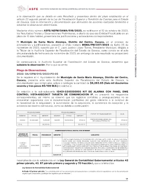En consecuencia, la Auditoría Superior de Fiscalización del Estado de Oaxaca, determina que