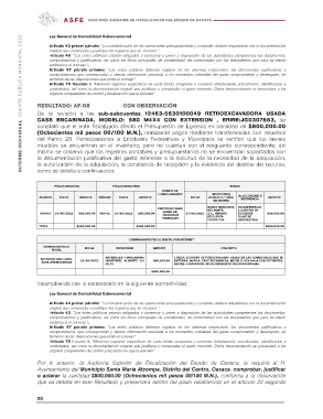 6E2ECFCE-9BE7-4EE0- 25/06/2022 MATERIALES Y MAQUINARIA 800,000.00 1 PIEZA 22101500 RETROEXCAVADORA USADA EN LAS CONDICIONES QUE SE