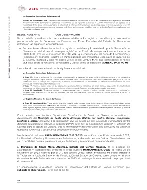 En consecuencia, la Auditoría Superior de Fiscalización del Estado de Oaxaca, determina que