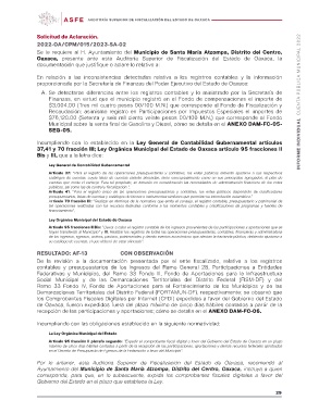 Solicitud de Aclaración. INFORME INDIVIDUAL CUENTA PÚBLICA MUNICIPAL 2022