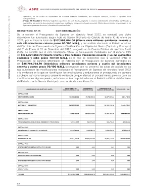 2022, se detectó que el ente fiscalizado reflejó un presupuesto modificado por el importe total