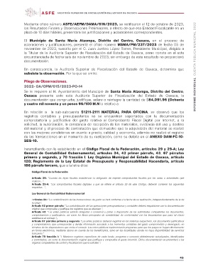 En consecuencia, la Auditoría Superior de Fiscalización del Estado de Oaxaca, determina que