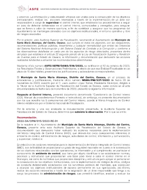Ayuntamiento se mantengan alineados con los objetivos institucionales, el entorno operativo y libre
