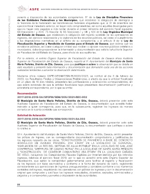 INFORME ESPECÍFICO CUENTA PÚBLICA MUNICIPAL 2022 AUDITORÍA SUPERIOR DE FISCALIZACIÓN DEL ESTADO DE OAXACA