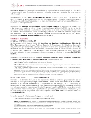 justificar o aclarar la observación que se detalla en este resultado y presentara toda la información INFORME INDIVIDUAL CUENTA PÚBLICA MUNICIPAL 2022