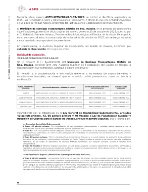 INFORME INDIVIDUAL CUENTA PÚBLICA MUNICIPAL 2022 Mediante oficio número ASFE/AEFM/DAMA/439/2023, se notificó el día 28 de septiembre de