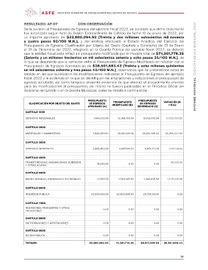 RESULTADO: AF-07 CON OBSERVACIÓN INFORME INDIVIDUAL CUENTA PÚBLICA MUNICIPAL 2022