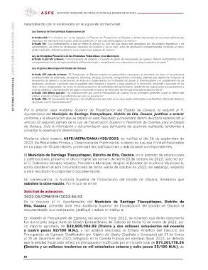 INFORME INDIVIDUAL CUENTA PÚBLICA MUNICIPAL 2022 AUDITORÍA SUPERIOR DE FISCALIZACIÓN DEL ESTADO DE OAXACA