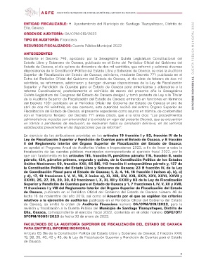 AUDITORÍA SUPERIOR DE FISCALIZACIÓN DEL ESTADO DE OAXACA INFORME INDIVIDUAL CUENTA PÚBLICA MUNICIPAL 2022