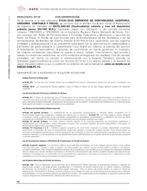 INFORME INDIVIDUAL CUENTA PÚBLICA MUNICIPAL 2022 RESULTADO: AF-18 CON OBSERVACIÓN