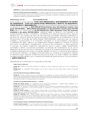 la evidencia del destino del recurso y la plantilla vehicular; así mismo, no canceló la documentación