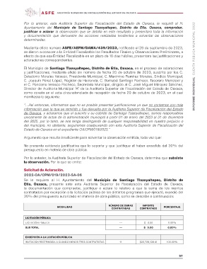 Por lo anterior, esta Auditoría Superior de Fiscalización del Estado de Oaxaca, le requirió al H. INFORME INDIVIDUAL CUENTA PÚBLICA MUNICIPAL 2022
