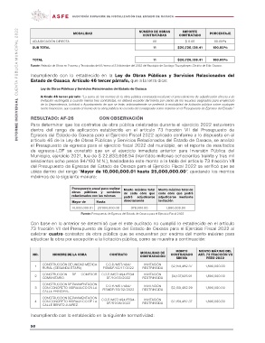 Artículo 46 tercer párrafo: “La suma de los montos de la obra pública contratada mediante el procedimiento de adjudicación directa y de