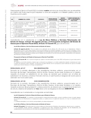 INFORME INDIVIDUAL CUENTA PÚBLICA MUNICIPAL 2022 Oaxaca para el Ejercicio Fiscal 2022 al celebrar cuatro contratos de obra pública que se encuentran