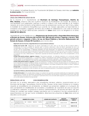 Por lo anterior, la Auditoria Superior de Fiscalización del Estado de Oaxaca, determina que subsiste INFORME INDIVIDUAL CUENTA PÚBLICA MUNICIPAL 2022