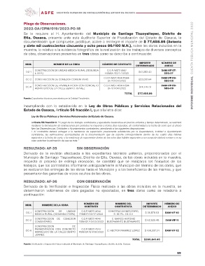 Pliego de Observaciones. INFORME INDIVIDUAL CUENTA PÚBLICA MUNICIPAL 2022