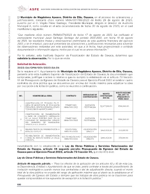 INFORME INDIVIDUAL CUENTA PÚBLICA MUNICIPAL 2022 El Municipio de Magdalena Apasco, Distrito de Etla, Oaxaca, en el proceso de aclaraciones y