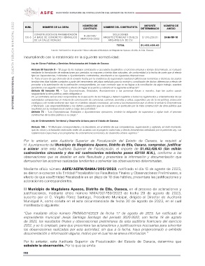 Por lo anterior, esta Auditoría Superior de Fiscalización del Estado de Oaxaca, le requirió al