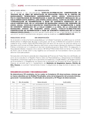 Se determinaron 55 resultados, de los cuales se formularon 49 observaciones, mismas que