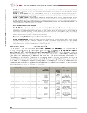 Entidad Fiscalizable afectó el Presupuesto de Egresos en cantidades de $ 166,367.20 (Ciento