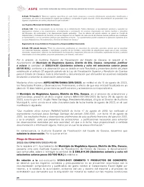 En consecuencia, la Auditoria Superior de Fiscalización del Estado de Oaxaca, determina que