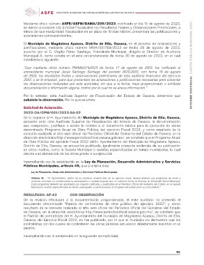 Mediante oficio número ASFE/AEFM/DAMA/205/2023, notificado el día 15 de agosto de 2023, INFORME INDIVIDUAL CUENTA PÚBLICA MUNICIPAL 2022