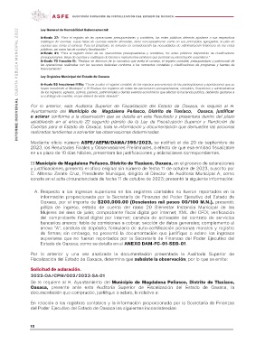 Por lo anterior, esta Auditoria Superior de Fiscalización del Estado de Oaxaca, le requirió al H.