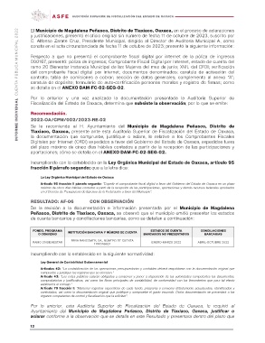 Fiscalización del Estado de Oaxaca, determina que subsiste la observación; por lo que se emite: