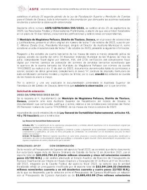establece el artículo 22 segundo párrafo de la Ley de Fiscalización Superior y Rendición de Cuentas INFORME INDIVIDUAL CUENTA PÚBLICA MUNICIPAL 2022